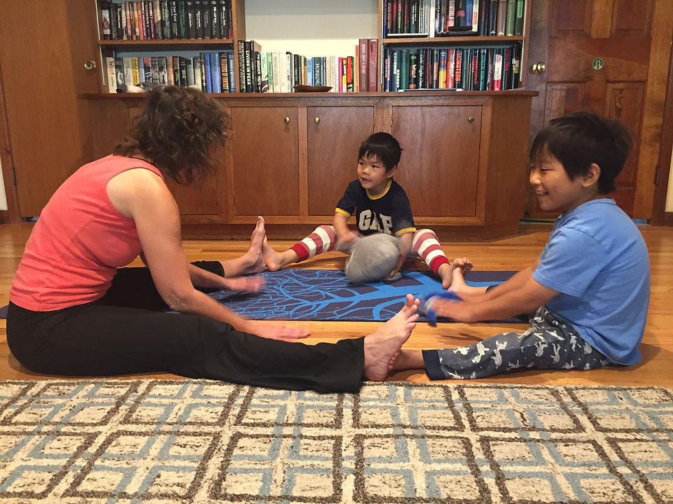 Say yes: Saying yes to your child is another way to show him that his needs are worth meeting and that you are there for him. From a neurobiological perspective, saying yes helps to calm the fear center of your child's brain and foster an embodied sense of connection, calm, and "felt safety." In many ways, saying yes during yoga can overlap with meeting your child's needs; affirm the poses and activities that your child wants to do, and allow him to do the poses in ways that feel comfortable to him. Just as importantly, it means finding affirming ways to set boundaries for your child during yoga--which you will likely need to do, especially with younger children. For example, your child wants to sit on your back while you do cat pose, but him doing so would cause you pain. Instead of telling him, "You can't climb on my back because it would hurt me," you might say, "I can do that pose with you next week when my back is feeling better. Today, why don't you climb underneath me instead?" Or suppose he wants to do tree pose on top of your desk, which would be unsafe for him and the desk. Instead of saying, "No, you can't do tree pose on the desk because it's unsafe," you could respond with, "I would love for you to do tree pose safely, so let's do it on the floor or the couch instead."